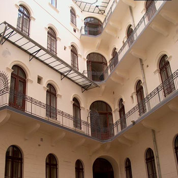 Műemlék bérpalota homlokzatainak, lépcsőházainak, kapualjainak felújítása Kincstári Vagyoni Igazgatóság 1999 engedélyezési és kiviteli terv 25000 m2 200.000.000 HUF Ferdinánd Árpád - Békesi Tamás